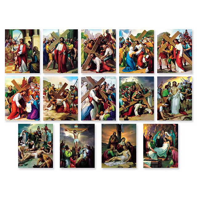 Vicentini's immortal works of art vividly depict the Passion of Christ. Lithographed in seven colors. A must for every classroom! 15 pictures to a set.