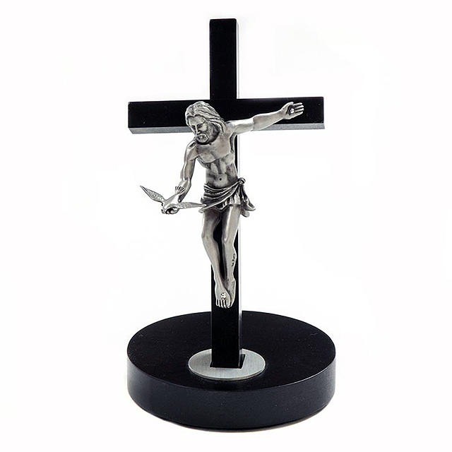 Black cross. Fine pewter "Gift of the Spirit" figure. Supplied with removable base for wall hanging