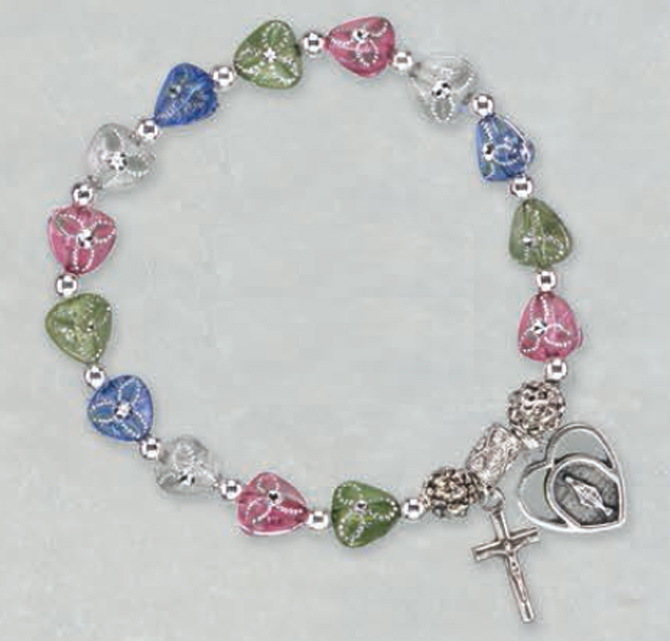 Multi-Color Acrylic Heart Stretch Bracelet.